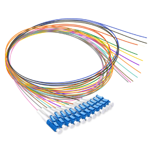 De Singlemode pigtails hebben dezelfde kleurcodering als de vezels in een glasvezelkabel met meerdere kernen. De set bestaat uit 12 pigtails van 1 meter.